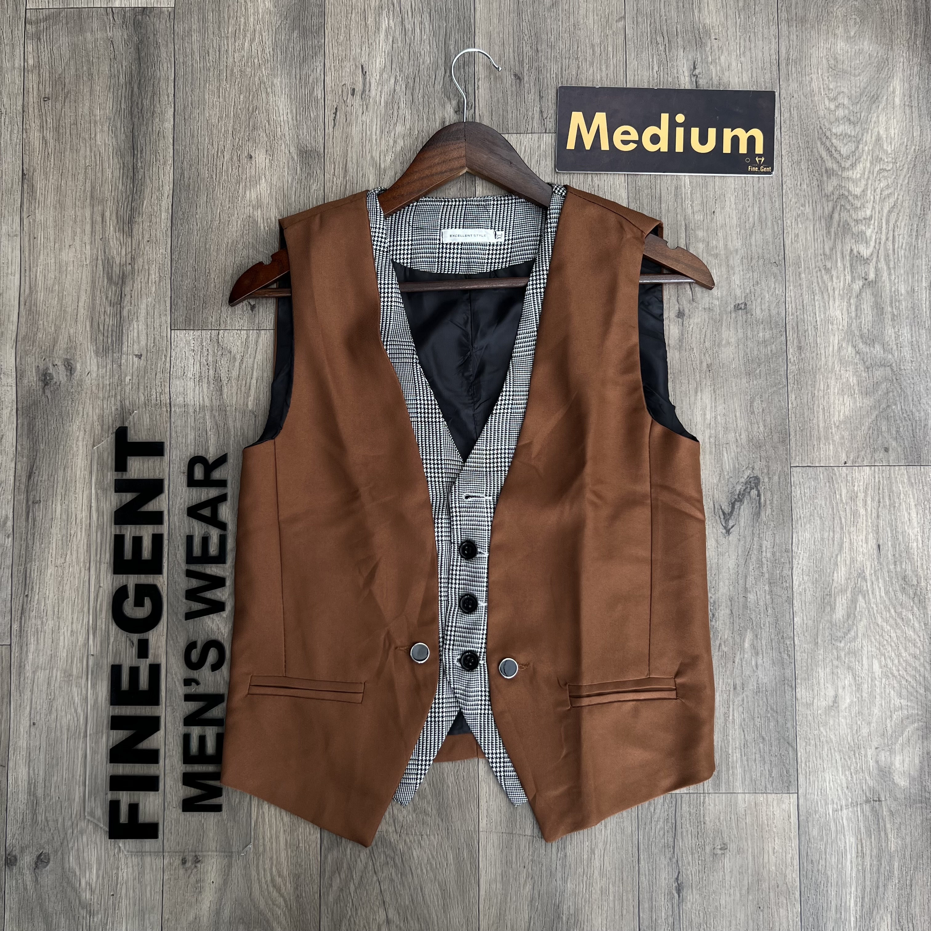 Brown and grey checked halfcoat