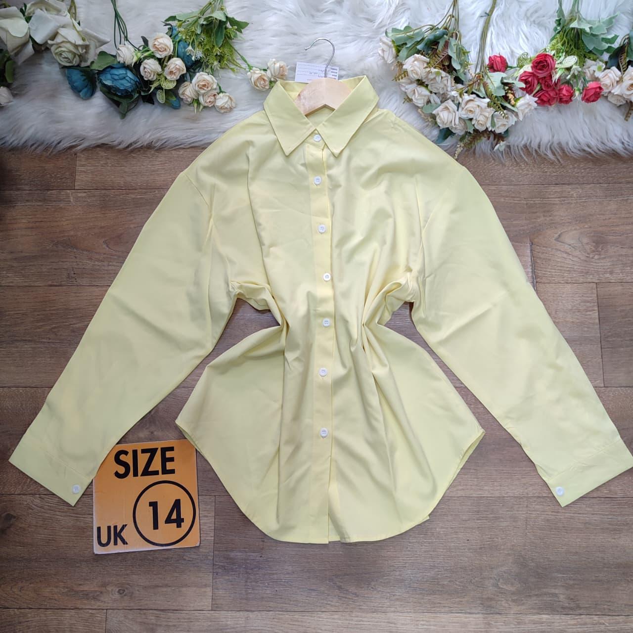 Yellow cotton collared long sleeved top