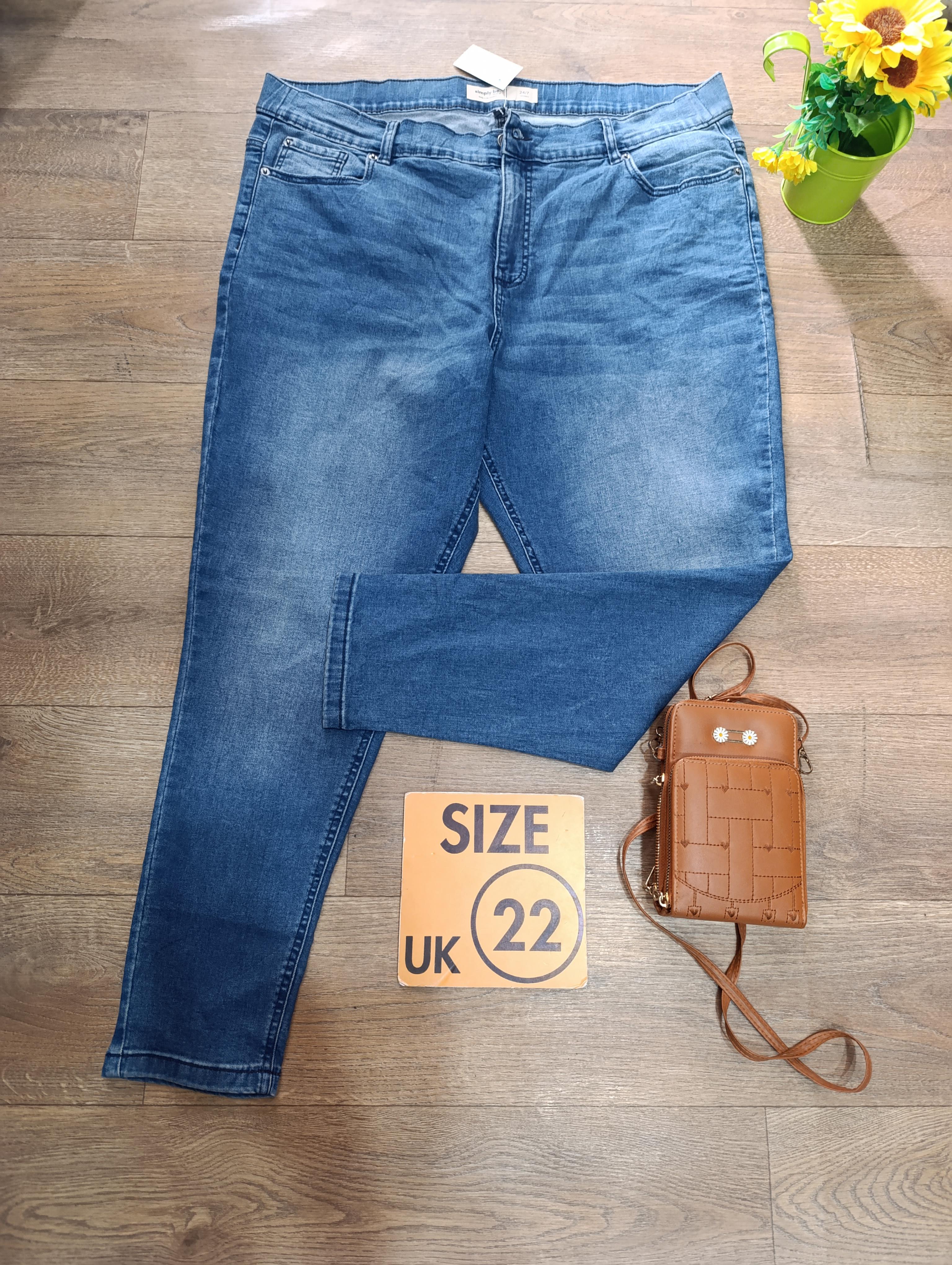 Blue skinny, size 22, carefully thrifted and well vetted,