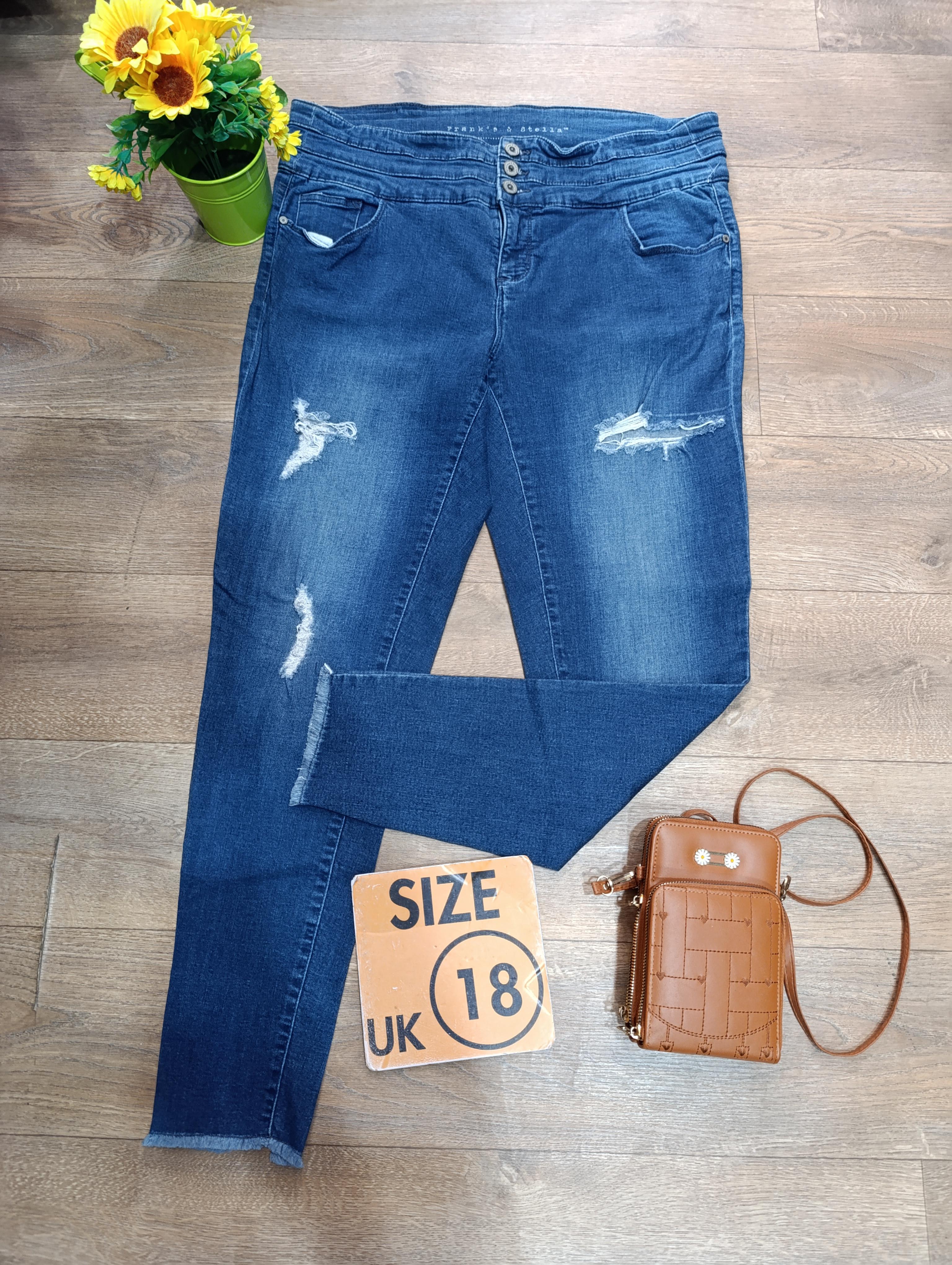 Blue ragged, size 18, carefully thrifted and well vetted,