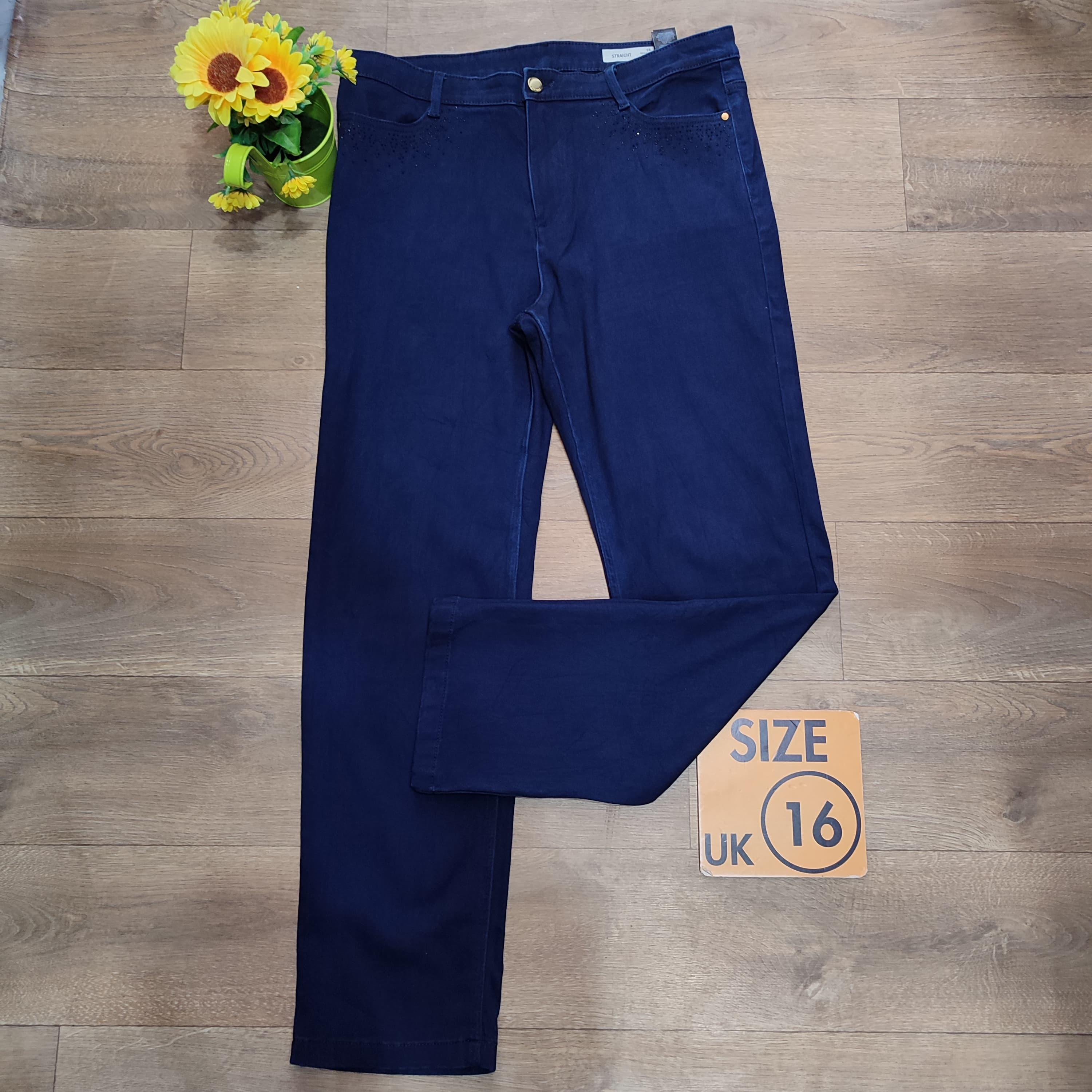 Dark blue, size 16, carefully thrifted and well vetted,