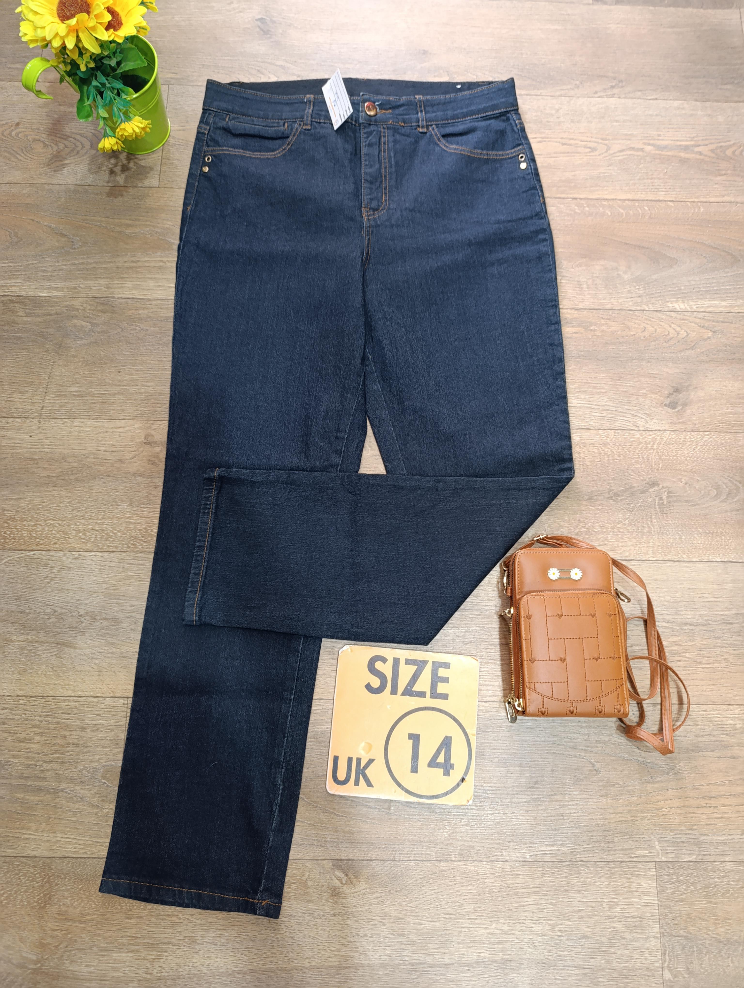Dark blue, size 14, carefully thrifted and well vetted,